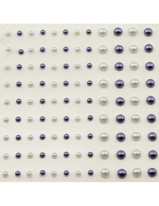 Demi-Perles Autocollantes 3mm&5mm Bleu marine et bleu clair 108pcs