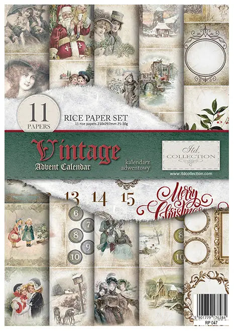 set créatif de papier de riz "calendrier de l'avant vintage " (RP047)