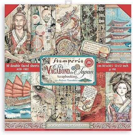 Bloc Papier de Stamperia 10 feuilles cm 30,5x30,5 - "Sir vagabond in Japan" (SBBL95)