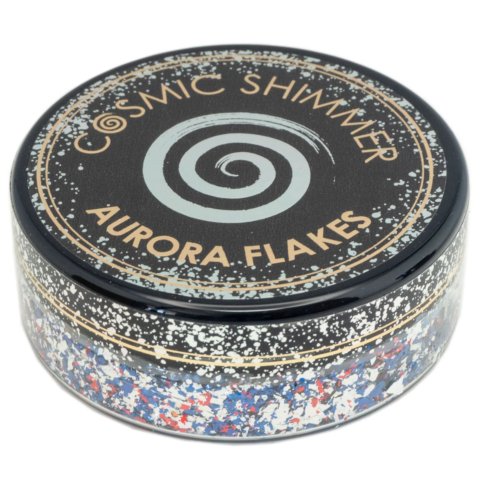 Découvrez les magnifiques Aurora Flakes Royal de Cosmic Shimmer ! Des flocons métalliques multicolores spectaculaires avec des reflets rouge, bleu, blanc et argenté pour créer des effets irisés et scintillants sur tous vos projets créatifs !