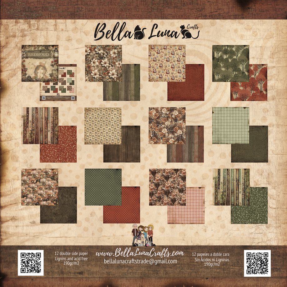 Partenariat exclusif avec Bella Luna Craft ! Découvrez les papiers basiques coordonnés de la collection "Redhood", inspirée du Petit Chaperon Rouge gothique. Ce bloc de 12 feuilles recto-verso vous offre des fonds unis et texturés parfaits pour mettre en valeur vos créations mystérieuses.