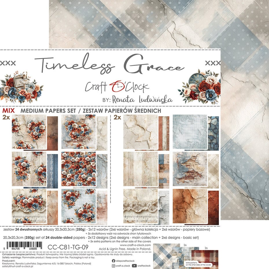 La collection Timeless Grace de Craft O'Clock vous offre 24 feuilles recto-verso de papier scrapbooking premium aux motifs délicats. Parfaite pour vos créations élégantes, romantiques ou vintage, cette collection incarne la grâce et le raffinement.